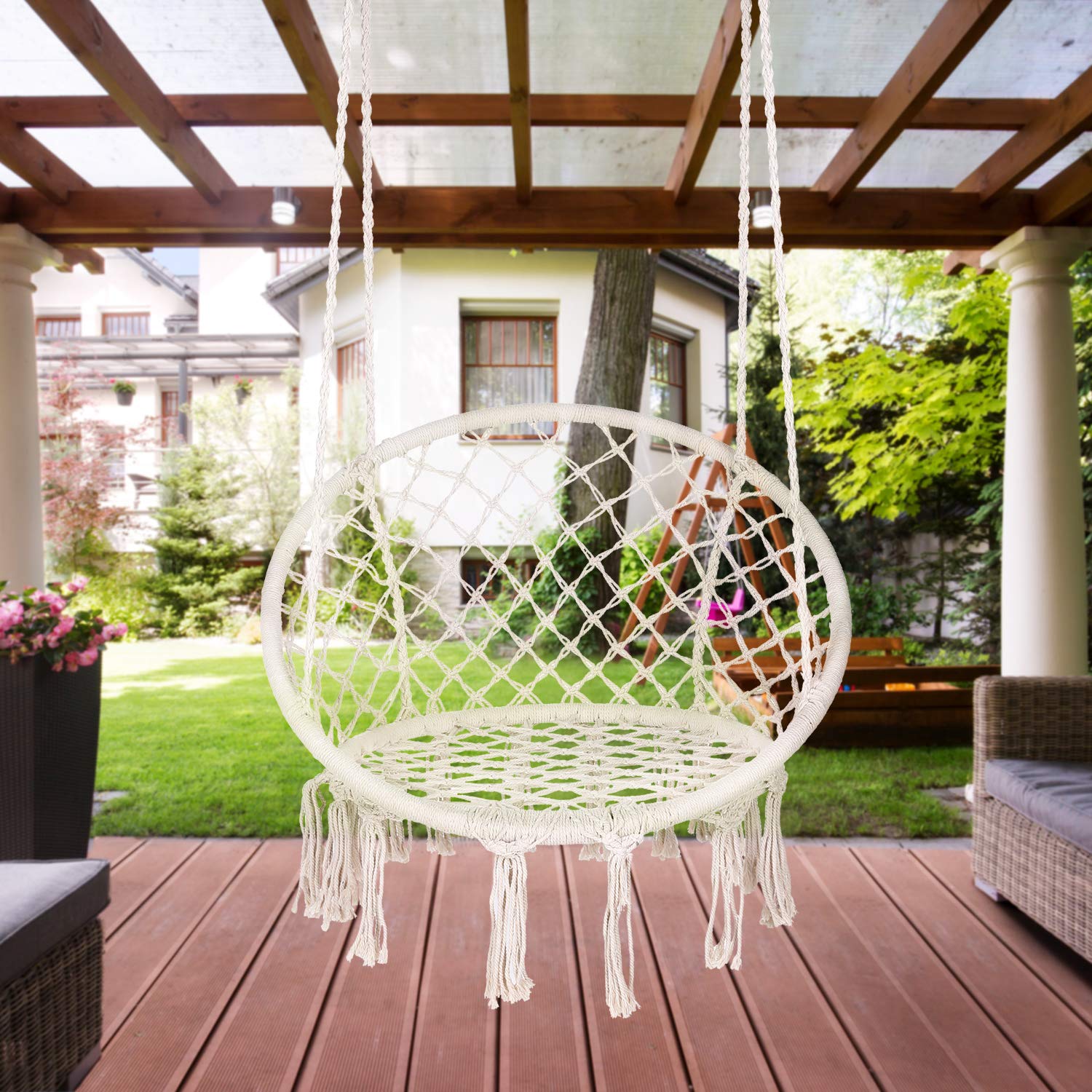 Уют на природе: Пергола с качелями-коконом