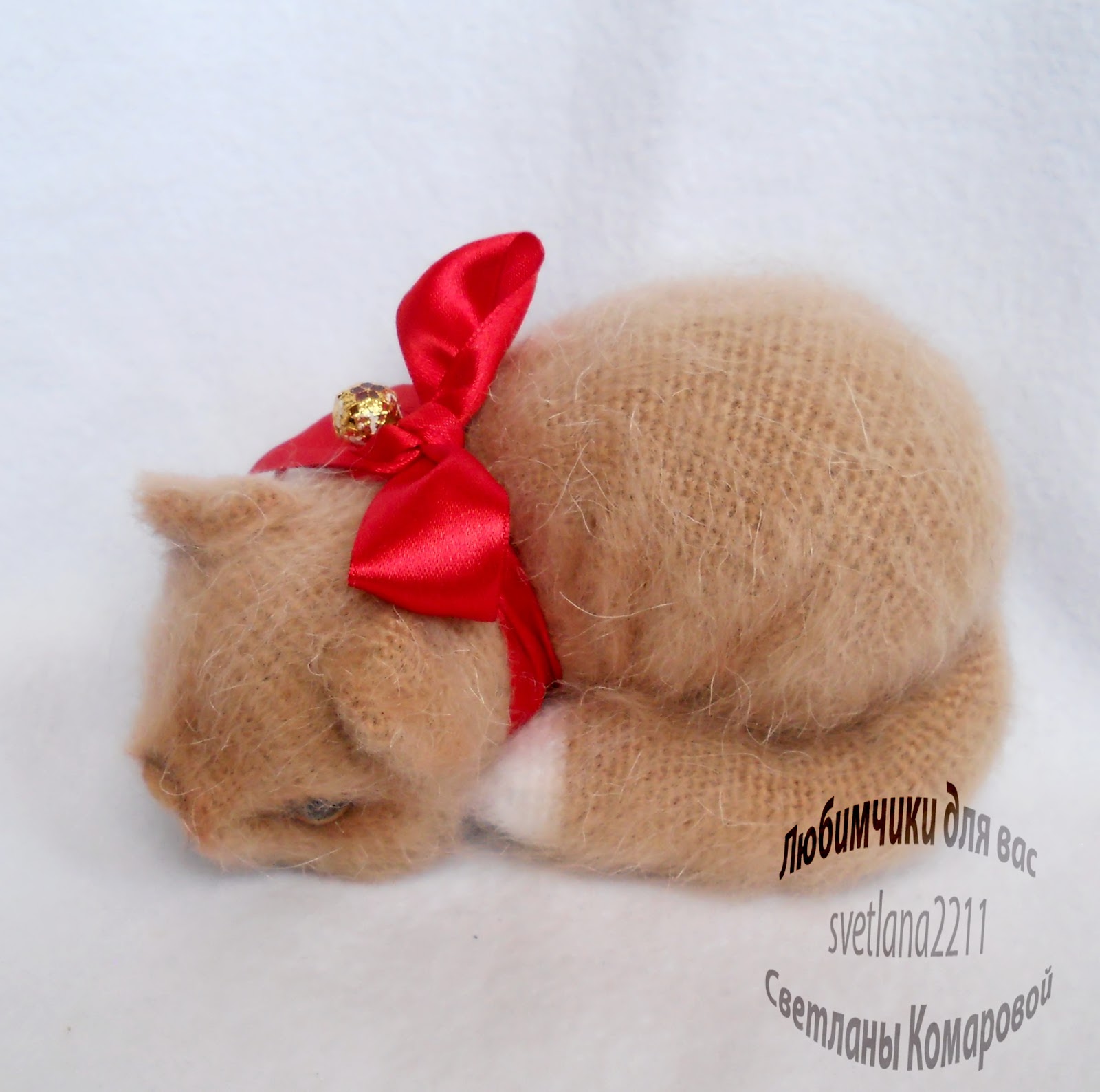 Очаровательные вязаные игрушки: котенок в лежачем положении